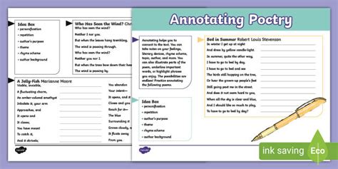 This Resource Is Perfect For Students Working From Home Who Need A Little Help Annotating Poems That.