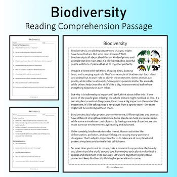 Based on the information in the passage, what can the reader conclude about biodiversity? In this engaging lesson, students study solutions for maintaining biodiversity and ecosystem services by reading a nonfiction article about. These worksheets ask students to look at.