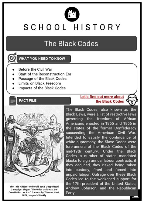 Web browse black codes activity resources on teachers pay teachers, a marketplace trusted by millions of teachers for original educational resources. These codes or rules were a way for whites to try to keep things the same as they were before the civil war. Web the black codes summary in this clip from fourteen: