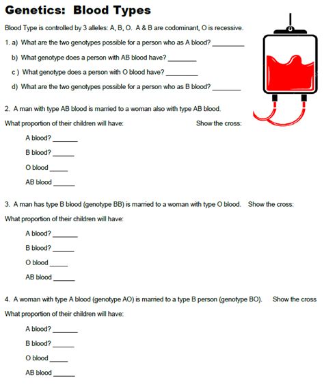 Blood Type Activity Worksheet. In this lab activity, students will solve a theft crime using their knowledge of pedigrees and the inheritance of traits (like ear lobe. Mastering blood types worksheet (biology/anatomy, hematology) created by.