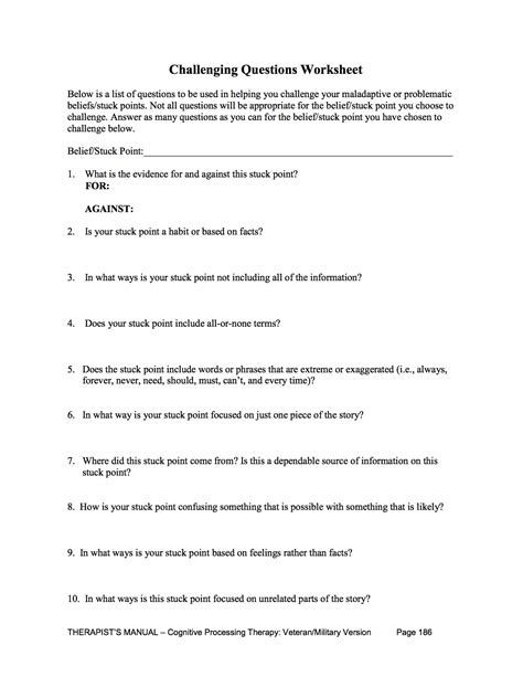 CPT Challenging Questions Worksheet Mental Health Worksheets from mentalhealthworksheets.com